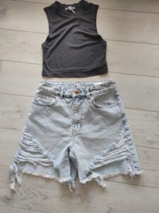 Модерен женски фармерки шорц со изразени дезени на издолжени раскинувања и реси на работ. Изработен од квалитетен деним материјал, совршен за летни комбинации со лежерен и урбан стил.