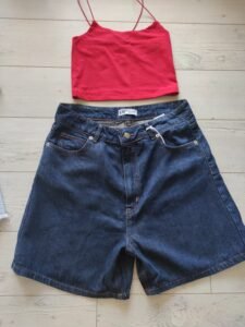 Овие женски џинс шорцеви се создадени за модерната жена која сака да изгледа стилски и да се чувствува удобно, додека прави еколошки избор. Изработени од 80% лиоцел и 20% коноп (hemp), овие шорцеви нудат уникатна комбинација на мекост, издржливост и природна еластичност. Лиоцелот, познат по својата мазна текстура и способност да ја задржува бојата, се спојува со конопот – материјал кој е еколошки, отпорен и траен.