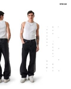Запознајте го вашето ново омилено парче за оваа сезона. Овие машки баги фармерки се дизајнирани за да ви понудат максимална удобност и модерен изглед. Нивниот опуштен крој и еластичен струк со врвки ви даваат чувство на леснотија, додека избелената црна нијанса им дава урбан и современ стил.