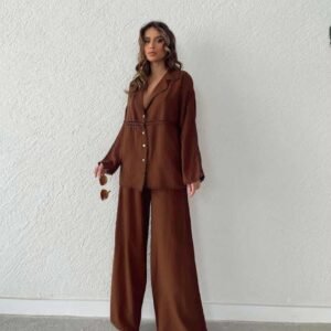 Широки панталони со вез – Чоколадно кафеава